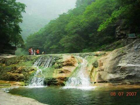 九連瀑堪稱青龍峽大峽谷的精品景點了,在不足300米的峽谷內(nèi)有九條瀑布分布其間,有美人瀑、鳳尾瀑、疊翠瀑、凝翠瀑等眾多的瀑布飛流而下,它們或氣勢磅礴,如飛龍?zhí)綔Y;或平整細膩,光滑似錦;或輕揚漫灑,似含羞少女。形似各自獨立,神卻相依相連,它們以色的河床傾瀉而下, 猶如一條長龍在谷底翻騰咆哮。瀑下一潭碧水恰似一只綠色的鳳鳥安臥在峽谷之中。遠遠看去,瀑布和水潭就像游龍和鳳鳥在一起私語嬉戲。 水搭橋,以水牽線,高低錯落,相映成趣,在青山掩映的河道之中勾勒出一幅素雅、美妙的水墨畫卷。