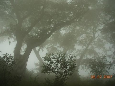 4:40吃好飯,做別青龍峽,我不時(shí)回望迷霧中的榔榆林。霧大車開得很慢,在車中我仍細(xì)品著青龍峽。她是一段美麗的傳說,她是一條涓涓的溪流,她是一部鮮活的地質(zhì)教課書,她是一座堡壘般的軍營,她是一片千年的榔榆樹,霧中的她是個(gè)羞澀的少女......