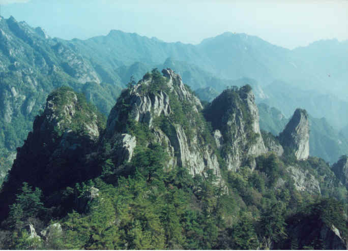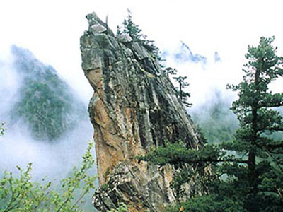 客車在一處停車場停了下來,我們在一處小攤上吃了碗手工面,老板熱情地拿了張旅游圖向我介紹我山上的情況,我聽后很是驚訝,原來石人山的地域這么大呀!看來今晚要不得不在石人山過夜了。為了做好充分的準備,我特地又買了八瓶純凈水,十二袋方便面,六根火腿腸,把旅行袋裝的滿滿的,妻看到我背著行囊的樣子,笑著對老板問:“要不要再帶頂帳篷呀?”老板也樂了“不用不用,山上旅館多的很,很方便的!”