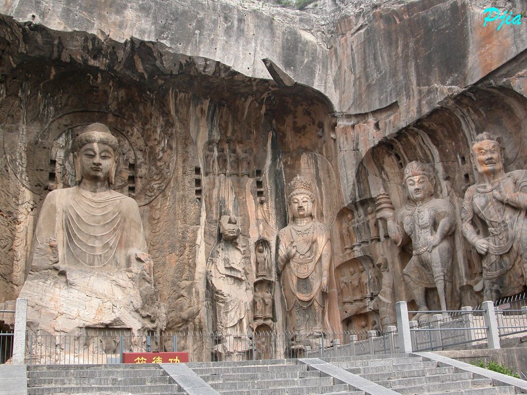 龍門(mén)石窟應(yīng)該實(shí)事求是的說(shuō)是滿(mǎn)目瘡痍,許多的石像都是失去了頭顱,是在清末時(shí)期被帝國(guó)主義國(guó)家掠去了。算是對(duì)古代的軟弱的一種祭奠吧。感嘆于古代勞動(dòng)人民的偉大智慧和力量,因?yàn)榇_實(shí)有些石像修造得非常精美。在入石窟之前,有個(gè)龍宮,里面陳列著歷代書(shū)法家書(shū)寫(xiě)的“龍”字,這倒是我十分喜歡的。