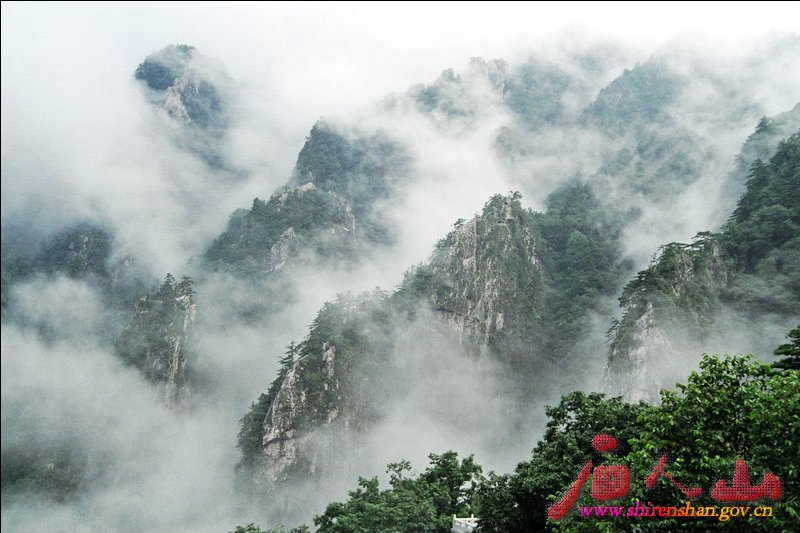 石人山是云霧的多發(fā)區(qū),由于特殊的地理位置和地形、地貌特點(diǎn),天無三日晴。最美不過看云霧,石人山的云霧變幻莫測,云霧出現(xiàn)時(shí),千條深谷,萬道山梁,如飄帶纏繞,轉(zhuǎn)瞬象白浪滔滔,一會兒象大海一樣平鋪,淹沒深谷溝壑,卷起云濤雪浪,隨著云霧的下沉,72座山峰出露,在云霧中飄浮,而當(dāng)太陽出現(xiàn)時(shí),云霧則鎏金流銀。