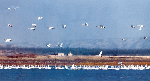 “天鵝是仙鳥,會為人們帶來吉祥,但要讓更多的人了解天鵝、保護天鵝,還需要宣傳,”老姚說,“去年10月25日天鵝就飛來了,比前年提早了20多天,今年10月中旬就回來了。天鵝在這里過冬的時間一年比一年長,前些年只有兩三個月,去年達到了5個多月,今年肯定會更長。”