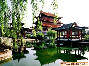 位于市中心的春秋樓氣勢(shì)不凡,創(chuàng)建于元代,95年修復(fù)的關(guān)圣殿,面闊七間,進(jìn)深三間,高30米,三重樓檐,頂飾黃色玻璃瓦,漢白玉砌的欄板,青石鋪的地;朝陽(yáng)下奕奕生輝,莊重古樸,內(nèi)塑關(guān)羽座像高13米,真是少見(jiàn)。園內(nèi)還有春秋樓,刀印樓,問(wèn)安亭,甘糜二后宮,掛印封金堂等園林建筑。此樓是后人為昭彰關(guān)羽忠義,建樓紀(jì)念。