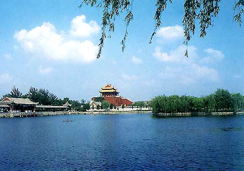 打車時(shí)司機(jī)說今天是剛剛訂的清明文化節(jié),清明上河園9點(diǎn)有演出,于是決定去那里,路上看到開封真是有點(diǎn)太落后了,是我去過得最差的一個(gè)城市,基本上就是個(gè)農(nóng)村,支柱就是旅游,可誰愿意來第二次呢?到了之后真是人山人海,找去買票,結(jié)果一買就是40分鐘,80元一張票。9點(diǎn)演出準(zhǔn)時(shí)開始,5 分鐘就結(jié)束了,人群開始往里擠,我們一看情況不對(duì),人太多了,于是決定去龍亭。去龍亭很方便坐船就直接到了,而且是免費(fèi)的。很佩服河南賣票的同志,我們?nèi)ド綎|的時(shí)候不論哪都不賣學(xué)生票,可這里趙然拿著他的過期的北大學(xué)生證,居然哪里都能買到學(xué)生票。花了35以后我被船送到了龍亭。龍亭是以前皇宮的地方四面都是水,有一段還特別像杭州西湖的斷橋。人多大,照相的人素質(zhì)差阿,其實(shí)這里就是一個(gè)宮殿,但建得很高,爬了很高之后看了一眼,就有下去了,那天天空灰蒙蒙的,感覺不好。本來想去天波楊府的,可司機(jī)說里面全是蠟像,我們一想就不去了。