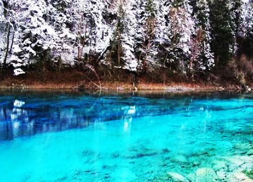 九寨溝的初冬猶如藝術大師精心繪出的一幅幅絕倫無比的經典畫作,銀裝素裹的山嶺峰谷成為冬日里一道潔白的風景線。站在遠處凝望,巍巍雪峰直指藍天,景色極其壯美,雪線以下的森林雪域相襯,溝谷縱橫交錯,湖溪綠樹倒影,瀑布倒掛層疊,讓人仿佛置身童話世界。