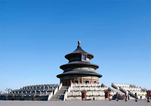 天壇是北京“天地日月”諸壇之首,是我國和世界上現(xiàn)存最大的古代祭祀性建筑群,始建于明永樂十八年,是一座典型壇廟,是明清兩代皇帝祭天祈谷的場所。每年孟春祈谷、孟夏祈雨、孟冬祀天。無論從架構、力學還是美學角度來看,天壇都是出類拔萃、舉世無雙的建筑杰作。現(xiàn)已辟為公園開放,昔日的皇家壇廟現(xiàn)已成為北京市區(qū)富有特色的旅游公園。 天壇是圜丘、祈谷兩壇的總稱,占地273公頃,面積占整個崇文區(qū)的1/4。天壇建筑布局呈“回”字形,有垣墻兩重,形成內外壇,壇墻南方北圓,象征天圓地方。有齋宮、圜丘壇、祈年殿、長廊、萬壽亭、回音壁、三音石、七星石和古柏等名勝古跡。