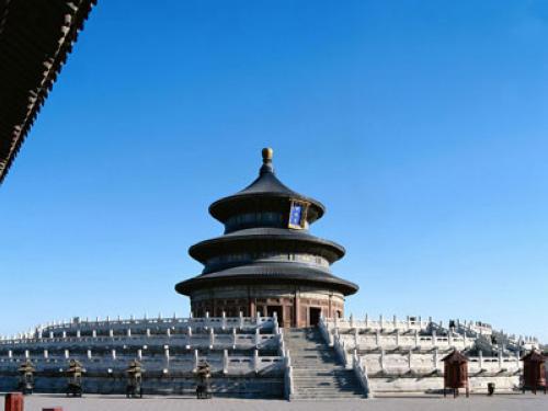祈年殿:是一座木結(jié)構(gòu)圓攢尖頂三重藍(lán)色琉璃瓦檐建筑,是清王朝舉行祈谷典禮的神殿,是祈谷壇的中心建筑。