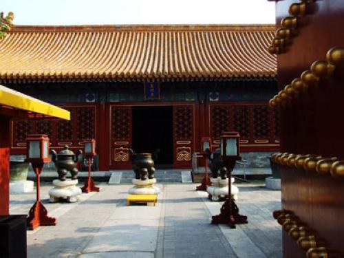 神庫建于明嘉靖九年(公元1530年),這組小建筑群是由四座五開間的懸山式大殿和兩座井亭組成。正殿叫“神庫”,是存放迎送神位用的鳳亭(抬“皇地祇”神位的轎子)、龍亭(抬配位、從位諸神位的轎子)和遇皇祇室修繕時(shí),臨時(shí)供奉各神位的地方。東配殿叫“祭器庫”,是存放祭祀所用的器皿用具的庫房。西配殿叫“神廚”,是制作祭祀供品食物的地方。南殿叫“樂器庫”,是存放祭祀所用樂器和樂舞生服的地方。東、西井亭專為方澤壇內(nèi)澤渠注水和為神廚供水。南殿及兩井亭于清乾隆十四年建成。
