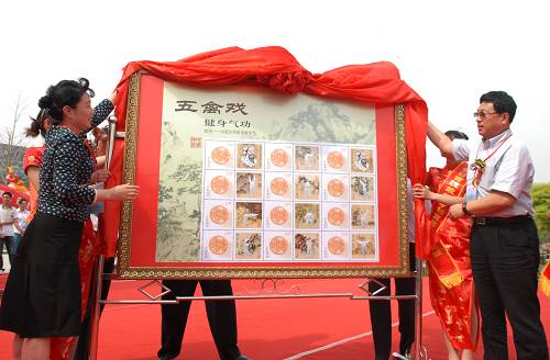 郵票被譽(yù)為國(guó)家名片,在傳播文化、擴(kuò)大宣傳、加強(qiáng)溝通、陶冶情操等方面,發(fā)揮著獨(dú)特作用。以三國(guó)歷史為內(nèi)容的郵票在許昌的發(fā)行,作為三國(guó)文化周的重要部分,也承載了豐富的文化內(nèi)涵。此次發(fā)行的健身氣功《五禽戲》郵票以東漢名醫(yī)華佗發(fā)明的五禽戲?yàn)閮?nèi)容,采用一套一版、12枚版式,每枚面值1.2元。主圖采用最新“和諧”圖案,附圖采用華佗像和《五禽戲》動(dòng)作。圖案精美,筆法細(xì)膩,具有很高的鑒賞價(jià)值、文化價(jià)值和收藏價(jià)值。為配合此套郵票的發(fā)行,滿足社會(huì)各界的需求,更全面、系統(tǒng)地宣傳中國(guó)三國(guó)文化,河南省集郵公司依托《五禽戲》郵票,結(jié)合社會(huì)熱點(diǎn),制作了以五禽戲題材為主,全面介紹三國(guó)文化的健身氣功《五禽戲》郵票首發(fā)紀(jì)念封、健身氣功《五禽戲》郵折、《和諧許昌》郵票珍藏冊(cè)、《千年魏都 文化許昌》郵票珍藏冊(cè)、《國(guó)家名片上的鈞窯瓷器——出戟尊》等7種郵品,在首發(fā)當(dāng)日現(xiàn)場(chǎng)及時(shí)銷(xiāo)售。