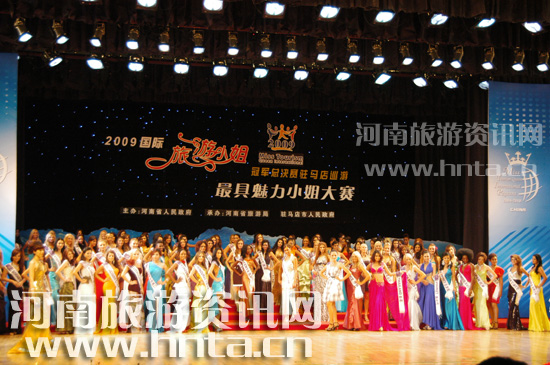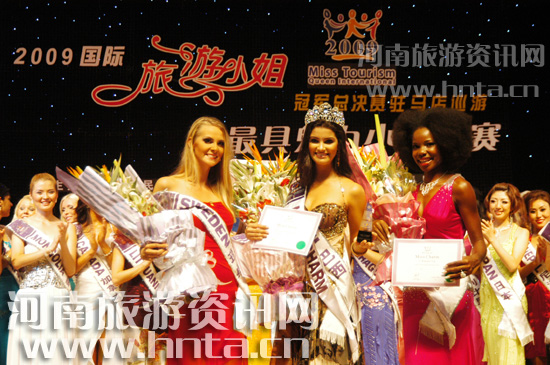 8月20日晚,2009國(guó)際旅游小姐冠軍總決賽最具魅力小姐大賽在駐馬店會(huì)展中心舉行。佳麗們都展現(xiàn)出了最燦爛的笑容和最優(yōu)雅的儀容,風(fēng)情萬(wàn)種的泳裝和晚禮服展示令人大飽眼福。經(jīng)過(guò)兩個(gè)小時(shí)的激烈角逐,最具魅力小姐桂冠被巴西佳麗Vivian Noronha CIA摘得,馬提尼克佳麗和瑞典佳麗分別獲得亞軍和季軍。河南省旅游局副局長(zhǎng)、巡游活動(dòng)副指揮長(zhǎng)倪豫州為冠軍得主頒發(fā)證書(shū)并與獲獎(jiǎng)佳麗合影留念。