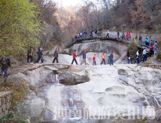 秋日的西泰山,漫山金黃,斑斕的紅葉在秋風中勁舞。本著“自游自在”的活動主旨,3日下午的情人谷之旅,會員們無拘無束的在谷中漫游。潺潺流水,小橋悠悠,滿樹“笑臉”般的柿子,著實讓會員們大飽眼福。靜靜地月亮灣、渺渺的圣女湖,使人在這愛情之山中陶醉,享受浪漫的回味!