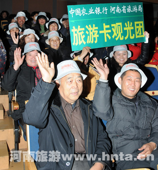 為響應(yīng)省委、省政府提出的“旅游立省”發(fā)展戰(zhàn)略,開(kāi)創(chuàng)文化與旅游結(jié)合發(fā)展的新模式,河南旅游資訊有限公司聯(lián)手河南省電視臺(tái)《梨園春》欄目,特推出農(nóng)行金穗中原旅游卡“梨園春現(xiàn)場(chǎng)觀光團(tuán)”活動(dòng)。持卡用戶只需提前通過(guò)電話或網(wǎng)絡(luò)進(jìn)行報(bào)名,憑金穗中原旅游卡卡號(hào)抽取幸運(yùn)會(huì)員,組成農(nóng)行金穗中原旅游卡“梨園春”方陣,現(xiàn)場(chǎng)觀看梨園春節(jié)目,并獲贈(zèng)會(huì)員俱樂(lè)部準(zhǔn)備的精美禮品一份;顒(dòng)自啟動(dòng)來(lái),廣大會(huì)員積極積極參與,最終田靜等20位會(huì)員獲得首期梨園春現(xiàn)場(chǎng)體驗(yàn)的資格。