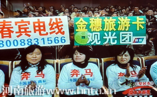 電視直播上金穗旅游卡觀光團(tuán)的宣傳牌