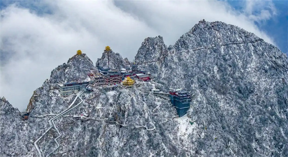 12月20日,洛陽(yáng)市欒川縣雪后的老君山景美如畫,吸引眾多游客前來(lái)拍照打卡。