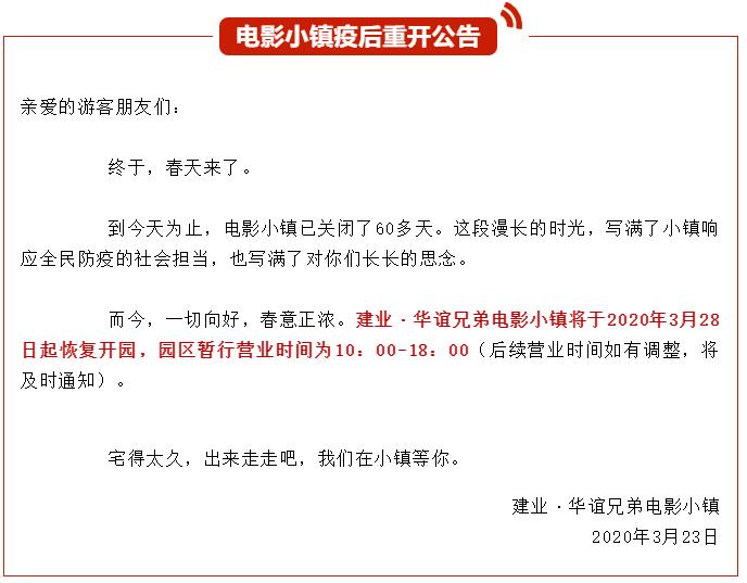 春來,我來!建業(yè)電影小鎮(zhèn)將于3月28日恢復(fù)開園啦!