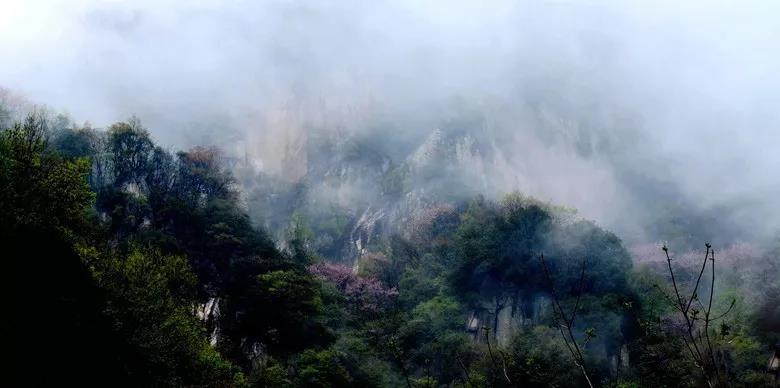清晨的老君洞一改往日的樣子,一層層霧氣將它包圍,讓它又增添了些縹緲之感,從遠(yuǎn)望去山好似懸在半空中,宛若一座仙山,遺世而立。