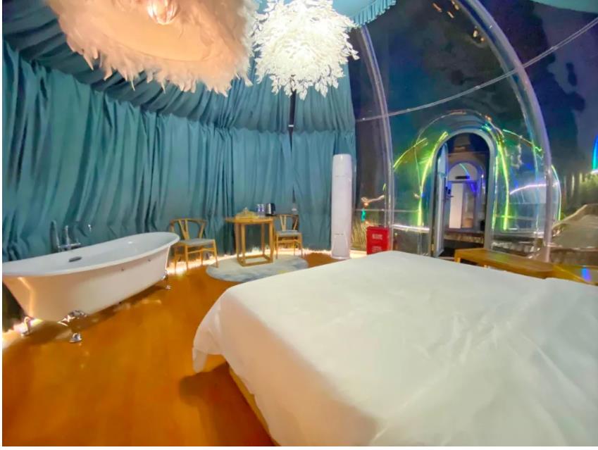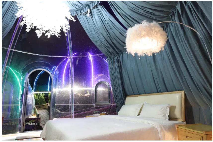 每個泡泡獨享一室一廳一衛(wèi),給您更大的舒適空間,高品質(zhì)的內(nèi)部配置,極大的提升了野奢度假的檔次。