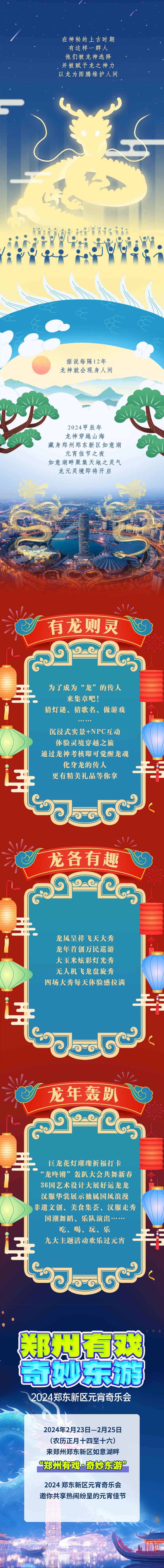 春夜笙歌迎佳節(jié),萬家燈火鬧元宵。喜迎元宵節(jié),鄭東新區(qū)再放“龘”招!“鄭州有戲·奇妙東游”2024鄭東新區(qū)元宵奇樂會(huì),2月23日至2月25日(農(nóng)歷正月十四至正月十六),如意湖畔,一起接“龍”!