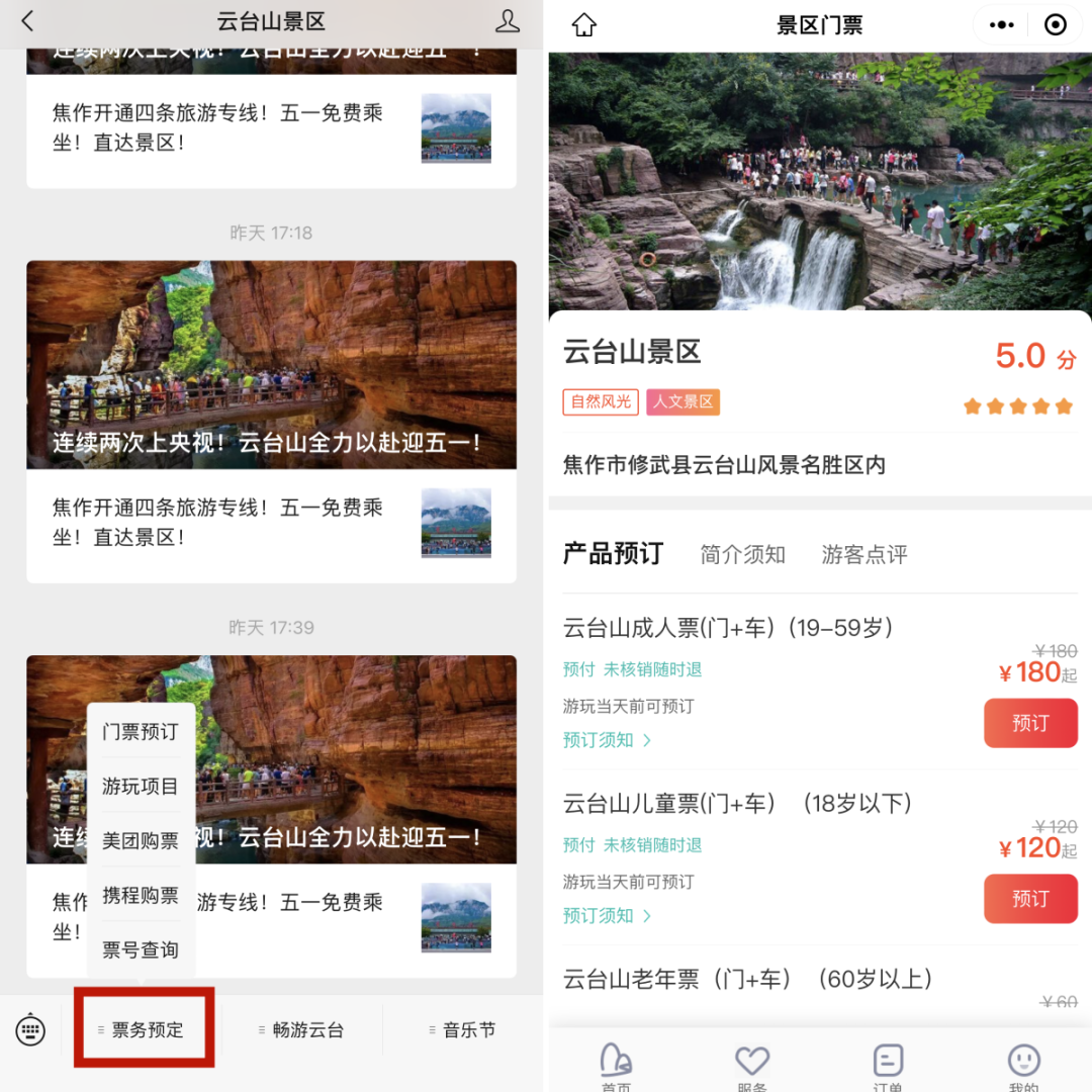 假日期間,云臺(tái)山景區(qū)實(shí)行實(shí)名制預(yù)約購票,請(qǐng)游客朋友提前在網(wǎng)上預(yù)訂門票,刷身份證直接入園,無需取票。游客可通過“云臺(tái)山景區(qū)”官方微信公眾號(hào)、美團(tuán)、攜程等電商平臺(tái)訂票,訂票成功即預(yù)約成功。