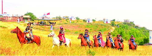 “旅游+農(nóng)業(yè)”,推出朝歌山莊農(nóng)耕體驗(yàn)游、秦街黃桃采摘游、裕豐果園休閑游、紂王殿金秋紅葉游等特色線路;“旅游+文化”,孕育出《大商朝歌》《許穆夫人》等大型實(shí)景演出以及云夢(mèng)山《調(diào)師離位》、古靈山《紂王降香》、朝陽(yáng)山《孔子祭拜》等實(shí)景互動(dòng)表演;“旅游+體育”,使淇縣登山、騎行、滑雪、乒乓球等全域旅游賽事此起彼伏;“旅游+美食”,使“淇河三珍”纏絲鴨蛋、無(wú)核蜜棗、淇河鯽魚(yú)美名遠(yuǎn)揚(yáng);“旅游+扶貧”,助力趙莊榮膺全國(guó)首批鄉(xiāng)村旅游重點(diǎn)村,涼水泉蝶變國(guó)家5星級(jí)民宿,靈山小鎮(zhèn)省級(jí)旅游度假區(qū)已通過(guò)專家組驗(yàn)收;“旅游+文創(chuàng)”,研發(fā)出竹簡(jiǎn)兵書(shū)、鑄鐵壺、蛋殼畫(huà)、黑陶等旅游商品數(shù)百種。多產(chǎn)業(yè)相融相盛,文旅融合大放異彩,鑄就朝歌古城新魅力。