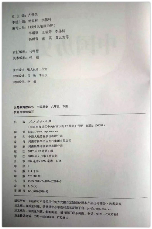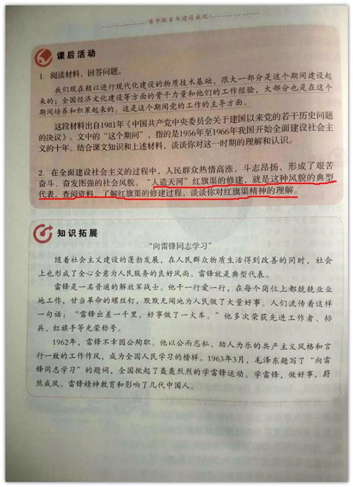 郭雙林教授主編,"紅旗渠"寫(xiě)進(jìn)了教育部審定的八年級(jí)(初二)歷史教科書(shū)。