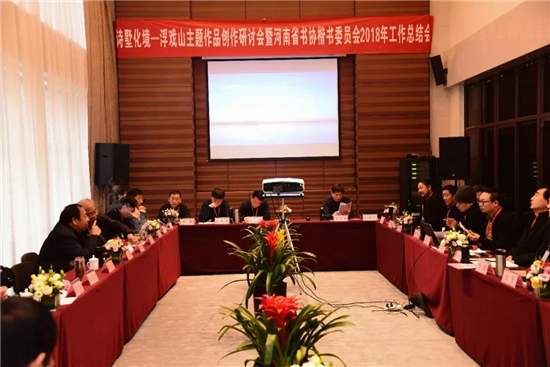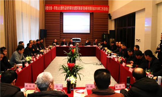 各位省文聯(lián)及書協(xié)成員圍繞2018年浮戲山人文主題所做的工作及成果、2019年主要工作安排做了詳細(xì)報(bào)告及討論。