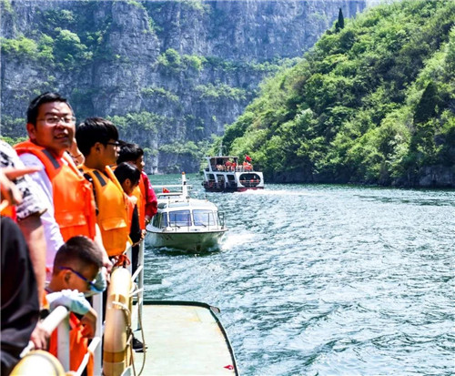 青天河目前擁有30余艘載客豪華游船,是豫北地區(qū)最大的游船群。越來越多游客選擇乘坐游船的方式觀賞青天河的美麗山水,體驗“北方三峽 紅葉王國”的林泉之美、峰巒之秀。