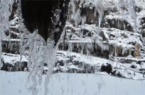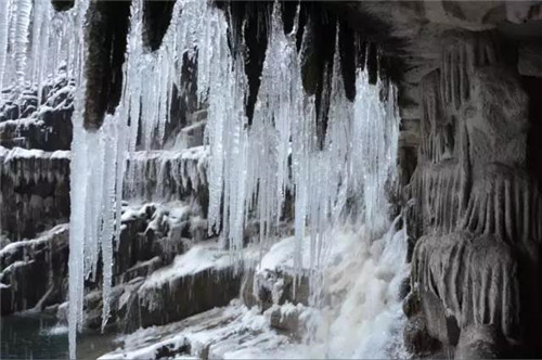 行走在這水簾洞之內(nèi),欣賞各式各樣的冰柱、冰掛,感受“大珠小珠落玉盤”,一時(shí)間竟以為是到了冰消雪融的初春時(shí)節(jié)。