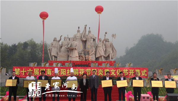 開幕式由汝陽縣委副書記孫云斌主持。汝陽縣委副書記、縣政府縣長趙振峰宣布第十六屆河南汝陽杜鵑花節(jié)暨炎黃文化節(jié)開幕。汝陽縣委常委、辦公室主任焦元鵬致辭,代表52萬汝陽人民向全國各地發(fā)出了春天的邀請函,歡迎大家到汝陽喝杜康,品美食,賞杜鵑,觀巨龍,頌炎黃。西泰山景區(qū)負(fù)責(zé)人杜海波介紹了景區(qū)發(fā)展情況。汝陽縣委常委、辦公室主任焦元鵬、縣政府副縣長蔡紹杰為榮獲汝陽“十佳特色美食”的商家們進(jìn)行了頒獎。