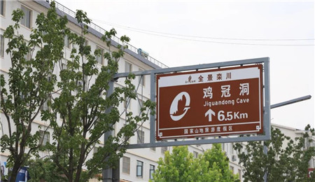 從洛欒高速下站后直行,沿著鸞州大道一路前行,鸞州大道是位于欒川縣城最南面的一條觀景大道,沿途可仰觀伏牛山色。欒川作為河南四個國家全域旅游示范區(qū)之一,道路沿途隔一段距離就有一處景區(qū)導(dǎo)覽牌,所以在欒川找旅游目的地,一般是不會迷路的。