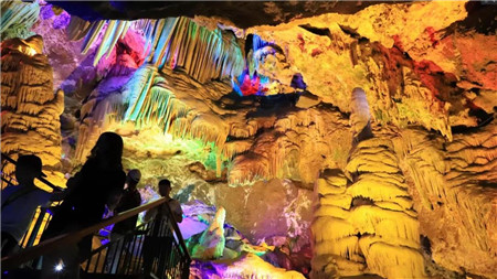 洞內有八大景點,依次命名為玉柱潭、溢彩殿、疊帷宮、洞天河、聚仙宮、瑤池宮、藏秀閣、石林坊。雞冠洞內上下落差較大,需要沿著石階下到洞底,然后爬樓梯,洞內壁時有滴水,所以一定要注意臺階,小心滑倒,注意碰頭。行不觀景,觀景不行。要停下來發(fā)現(xiàn)那些造型奇特的鐘乳石、石花、石筍、石柱,感受它們身上的沉積的滄海桑田,觸摸時間。