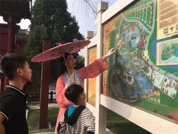 導(dǎo)游姐姐仔細(xì)的為游客們講解~