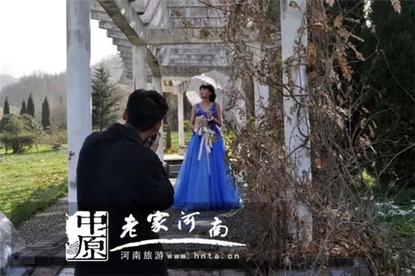 偶遇在百花坡拍婚紗照的新人,他們或低聲呢喃,或幸福微笑,為雞冠洞的冬天增添了浪漫的氣息!