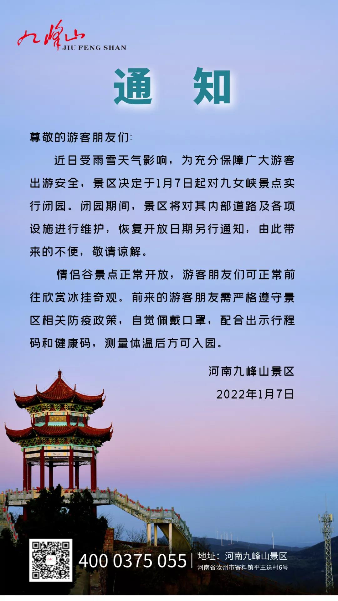 通知:因天氣原因,九峰山景區(qū)調(diào)整部分景點(diǎn)開放時(shí)間