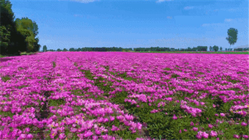 晴空下的花田,郁郁蔥蔥,嬌艷的花冠個個碩大飽滿,紅的、白的、紫的、粉的……一株株,一簇簇,爭先恐后趕赴一場花之盛事。