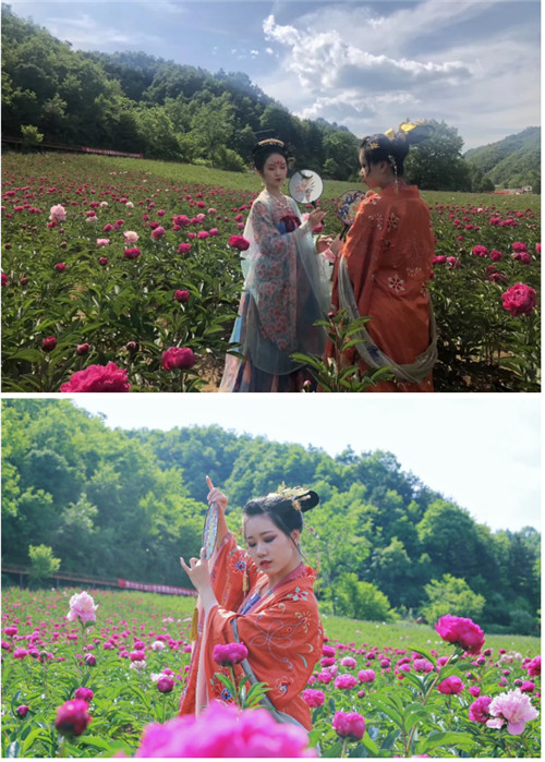 活動當天,十位美麗的花仙子,將身著華美的漢服,扮成十種芍藥花神,伴隨著仙音妙樂,自花田之中款款而來,開啟一段“十品芍藥爭艷赤土店”的故事。