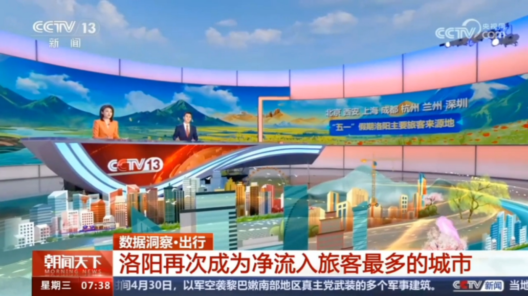 這個(gè)假期,洛陽和龍門石窟再次亮相央視!火出圈!近日,據(jù)央視新聞報(bào)道,“五一”假期,洛陽再次成為凈流入旅客最多的城市。洛陽憑借獨(dú)特的歷史古跡和傳統(tǒng)文化風(fēng)情,不光吸引了周邊城市的旅客,北京、西安、上海、成都、杭州、蘭州、深圳也是“五一”假期的主要旅客來源地。