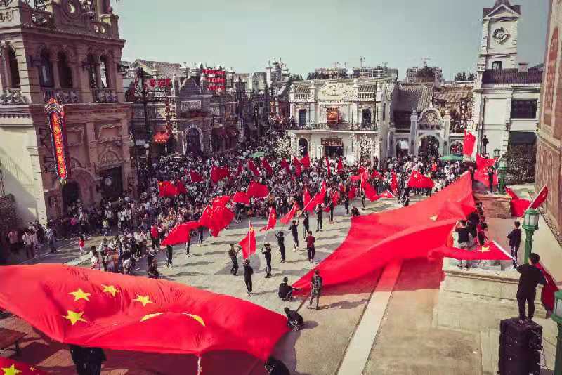 此外,因恰逢新中國(guó)成立70周年,電影小鎮(zhèn)黃金周期間還專門策劃了《我和我的祖國(guó)》特別節(jié)目,大量游客參與其中,游玩之余感受對(duì)祖國(guó)濃濃的情誼。