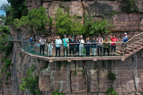韓國旅游踩線團一行來到新鄉(xiāng)市輝縣市八里溝景區(qū) 孫明新 攝