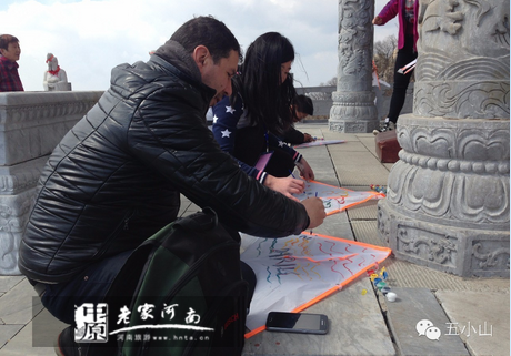 怎么樣?小小的風(fēng)箏,從被發(fā)明出來(lái)那一天起,一直到今天,是不是承載了咱們泱泱中華民族的工匠精神呢?你是不是也想帶上你的孩子一塊制作一個(gè)屬于你自己的風(fēng)箏呢?那就來(lái)我們南召五朵山景區(qū)吧——3月26日到4月10日期間,我們可是對(duì)每一位購(gòu)買(mǎi)全價(jià)門(mén)票的游客都會(huì)免費(fèi)贈(zèng)送一個(gè)濰坊風(fēng)箏廠定做的DIY風(fēng)箏啊!想想看,您可以和您的孩子一起畫(huà)好風(fēng)箏的畫(huà)面,組裝好一只銘記著您和孩子美好記憶的風(fēng)箏,一定會(huì)特別有意義的,那就別猶豫了,趕快帶著孩子來(lái)我們五朵山吧。小編在這里把五朵山風(fēng)箏節(jié)第一天參加免費(fèi)DIY濰坊風(fēng)箏的一些現(xiàn)場(chǎng)花絮分享給大家吧,您看,還有歪果仁也DIY了一只風(fēng)箏呢。