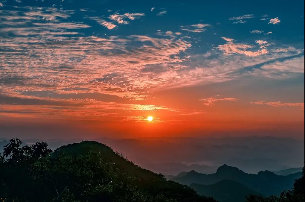 看山頂日出點(diǎn)染整片天空和云海的壯景