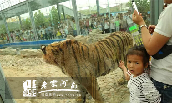 這位小朋友膽子可真大,離老虎這么近,竟然一點也不害怕。
