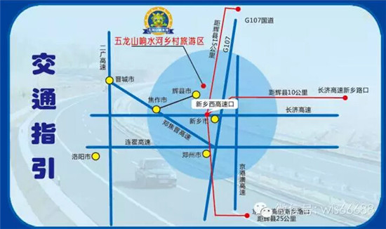 石家莊、邢臺、邯鄲方向:京珠高速南下→長濟(jì)高速→新鄉(xiāng)西下→走新輝路→李固路口→趙凝屯→常村鎮(zhèn)→五龍山響水河(半小時即到)