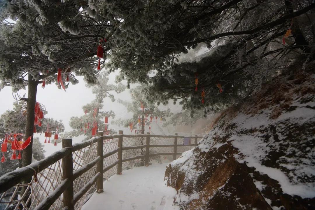 溫馨提醒:進(jìn)山賞雪的游客要注意安全,一定要沿景區(qū)正規(guī)游覽路線行走,注意保暖防滑,切勿到非游覽區(qū)域等危險(xiǎn)地方拍照。