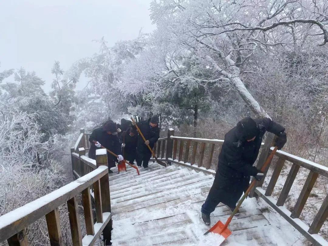 為給廣大游客提供安全舒適的游覽環(huán)境,方便游客欣賞雪后美景,老君山景區(qū)緊急啟動(dòng)清雪預(yù)案,全員到崗展開清雪工作,截止到上午10:00,老君山景區(qū)主游覽路的積雪已全部清除完畢,游客朋友可放心前來(lái)游玩。
