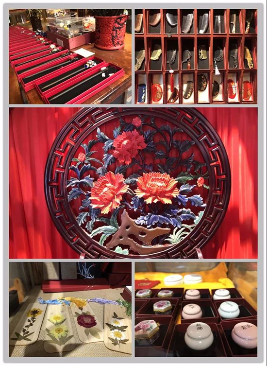 館內(nèi)展品豐富翔實(shí),如婚娶中的嫁妝,有刺繡服裝、發(fā)簪、頭飾、胭脂、梳妝盒、梳子等。