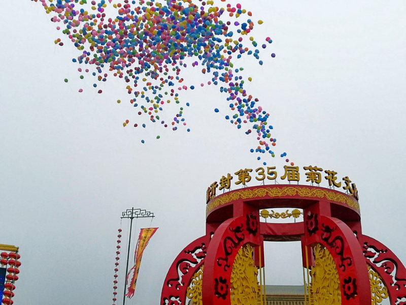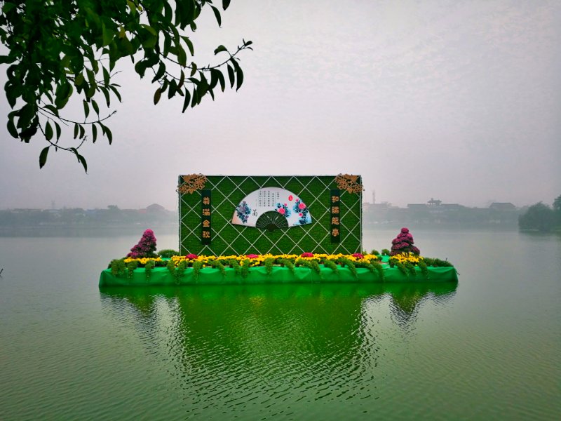 令人目不暇接的景點還數(shù)不勝數(shù)。如位于潘楊二湖水面上的《扇舞景悠》和《菊香裊裊》,以及位于龍亭大殿西側(cè)荷花池水面上的《湖光菊艷》,或依水造景,或貼波架橋,靈動的水景與灼灼秋菊相映。再如位于龍亭大殿院內(nèi)的《瑞獸獻!罚粚“麒麟”東西相望,目如閃電,須眉飛揚,觀之令人震撼;而大殿院花圃內(nèi)、展廊中,則有眾多風(fēng)情萬種的珍稀菊花供游人品賞,有數(shù)萬“炫彩菊”和“乒乓菊”組成的“神女散花”“錦鯉躍水”“鳥鳴枝頭”“宮墻花窗”等各種造型更是令人贊嘆不已。