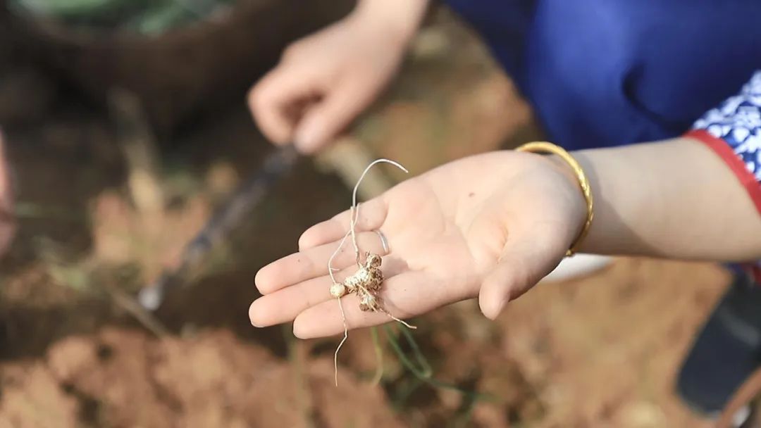 小野蒜底端呈不規(guī)則卵圓形,表面呈現(xiàn)黃白色或淡黃棕色,底部有突起的鱗莖盤。它的莖葉長得很像蒜,也有蔥、蒜的味道。經(jīng)常食用對降低血糖有很大益處。