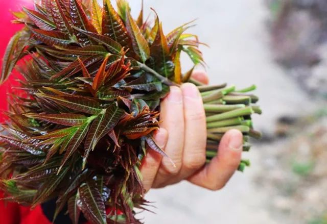 春風(fēng)不斷的催促著,香椿不緊不慢冒出嫣紅的芽。這種楝科植物的味道是極其特殊的春天味道,有經(jīng)驗的人們在不早不晚的時候,掐香椿頭,制作香椿餅,炸春芽,香椿炒蛋、涼拌香椿……品著這般清香,仿佛春就在眼前。