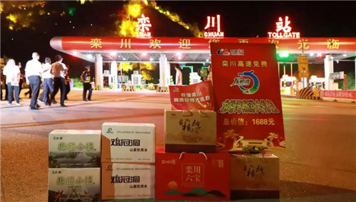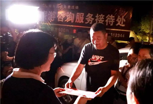 在重渡溝站,由欒川縣人大常委會副主任郭文華為來自新鄉(xiāng)的劉先生一家送上欒川高速免費活動驚喜旅游大禮包。